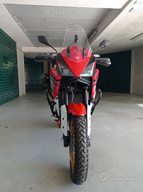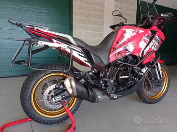 Grafica personalizzata, monta tantissimi accessori: barre para motore Givi, supporto per piastra bauletto, paramani, telaietti sgancio rapido Kappa per borse laterali, pedane maggiorate in acciaio.