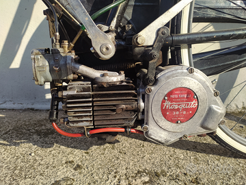 Vendo Mosquito 38-B 49cm³ su telaio bici BIANCHI anni 50, freni a bacchetta, funzionante, tenuto in attivo in corte privata, tutto conservato, pneumatici nuovi. Prezzo trattabile.