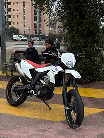 Vendo Mondial SMX 125 anno 2020. La moto all'attivo presenta 25000km, destinati a salire dato il continuo utilizzo. Moto comprata da me a 8400km nel novembre 2023, a seguito dell'acquisto sono stati effettuati accorgimenti tecnici tra cui cambiamento plastiche lato DX causa caduta ex propirietario, guarnizione del para olio forcelle SX sostituita, sostituzione batteria e tagliando completo. Modifiche e manutenzione effettuata da me : Cambio porta targa dev craft pieghevole Cambio tutte e 4 frecce led omologate Cambio scarico Leo Vince carbon con db killer ( fornisco anche originale ) cambio plastiche para forcelle e codino A 22500 km cambio intero kit trasmissione ( nuovo pbr) cambio pastiglie e dischi anteriori e pastiglie posteriori a 17000km Montaggio gomme Pirelli diablo rosso II a 16000km ( gomme ancora al 60%) Cambio manubrio Nuovo farò posteriore di frenata con luce targa omologata Cambio liquidò radiatore a 21000km tagliando ogni 3/4 k km ultimo tagliando effettuato a 21000km con cambio di filtro olio la moto purtroppo mi è scivolata mentre facevo manovra sulla ghiaia infatti presenta leggeri graffi sulla parte Sx delle plastiche difficili da vedere ( fornisco foto) inoltre la spia della manutenzione è accesa ma solo per un fatto che richiude un software particolare per fare in modo che vada via, inoltre di recente ho perso la linguetta che chiude la sella e ora non si chiude piu ma bisogna solamente trovare una vite e una staffettina per farla tornare a funzionare Moto usata da ragazzo di 16 anni perfetta per imparare e per iniziare a fare i primi giri lunghi, motore affidabile e divertente, vendo per passaggio a categoria più alta. PREZZO TRATTABILE DI POCO