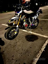 La moto monta il maxi kit tpr 86 monofascia in ghisa, frizione polini, pacco lamellare stage 6 alza pacco stage 6 collettore polini 360 gradi, filtro stage 6una stella, carburatore pwk stage 6 28, secondo radiatore , pompa dell'acqua maggiorata stage 6, carter frizione nuovo, mvt dd appenainstallata, faro a led, grafiche Rockstar con plastiche bianche, leve freno blu , paramani rtech, gomme pirelli diablo rosso nuove, pastiglie freno anteriori e posteriori nuove e faro a led.