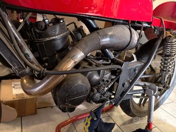 attualemnte monta un motore gilera ngr a disco rotante, il serbatoio e dedicato alla benelli, MENANI. In vetroresina.