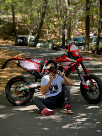 Vendo per passaggio a categoria superiore: beta 450 motard, motore KTM. Accessori: 2 cerchi con pneumatici da cross, kit cover rosso usati .