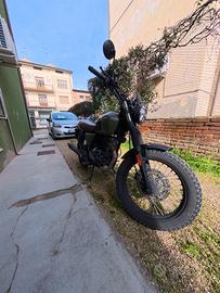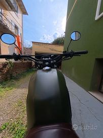 Moto Brixton BX 125 X scrambler, colore verde militare con sella tabacco con pochi chilometri di utilizzo. Cilindrata 125 cc, perfetta per patente A1. Motore monocilindrico. Parafanghi, manopole, luci e tutte le componenti interamente originali. Piccolo graffio sul lato sinistro del serbatoio, ma su quello possiamo venirci incontro con il prezzo.