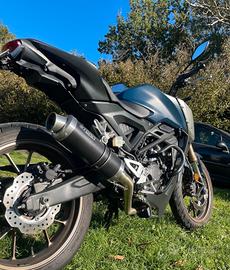 Vendo CB 125 R ottime condizioni per passaggio a cilindrata superiore. Nessun graffio o sinistro, tagliandi tutti in officine Honda in garanzia fino giugno '26. La moto monta: - Portatarga inclinato - Paramotore neri - Scarico completo + catalizzatore Storm, dotato di omologazione e db killer Disponibili scarico e portatarga originali. No perditempo.