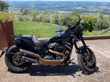 Harley Davidson FXFBS Softail Fat Bob 114 del 4/2019, con 8843 km, colore: Vivid Black. Accessori: parabrezza, borsa, scarico elettronico speciale Jekill & Hyde.