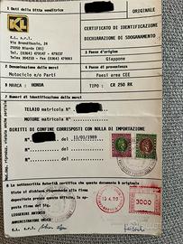 Honda CR250 2T con documento ufficiale HM anno 1989 revisionata completamente . Forcelle mono verniciatura telaio a forno motore revisionato cmpletamente sostituito carter in magnesio con carter in alluminio gomme nuove trazione nuova sostituito lana finale nessun lavoro da fare pronta all'uso prezzo trattabile