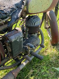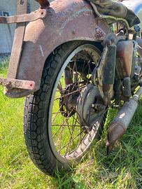 La moto non è marciante, ma non è stata manomessa o cannibalizzata. Conserva il fascino del tempo, con ruggine solo superficiale e telaio in buone condizioni strutturali.