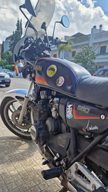 Mio papà vende moto d'epoca Yamaha 550 XJ, anno di immatricolazione 1982, esenbollo dal 2004. 100.000 km, prontamente funzionante, scattante, efficiente. Prezzo non trattabile.