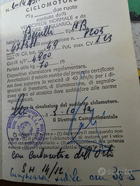 Moto mini bike originale 3 marce anno 1970 con libretto di circolazione e istruzioni d'uso originali.3 marce da restaurare