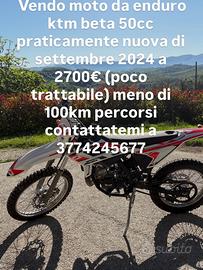 Vendo moto beta da enduro ktm 50cc sotto ai 100km effettuati, anno di acquisto settembre 2024, in ottime condizioni costo 2700€ (poco trattabile) numero di telefono: 3774245677