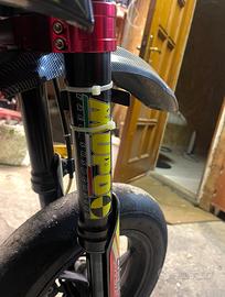 Pit Bikes Dream 4 tempi 180 cc , perfettamente funzionante , uscita per cinque volte ed attualmente ferma in garage. Componenti : 1) Pedane arretrate 2) Forcelle mupo black diamond 3) Mono DNM MTG-RG 4) Kit piastre sterzo angolazione regolabile nergal regolabili per avanzare e arretrare 5) Carburatore MIKUNI originale , tarato pitbike , valvola piatta 6) Kit P.B.R. Race 4 fori-pignoni 16-17-18 Corone 39-41-43 7) Pompa freno radiale braking 8) Pinza freno stage 6/R/T a 4 pistoni 9) Marmitta LM pro / myper m.y. 10) Kit collettore aspirazione tbkz 11) Testa TB rance + albero a gomme TB PARTS 12) Kit coperchi testa TB nero 13) Accensione analogica italkit selettra 14)Telaio in lega di alluminio MALCOR 15) Termocoperte IRC 16) Cronometro PZ racing st 400-b GPS POSSIBILITA' DI PROVA Per ulteriori foto ed informazioni contattatemi .