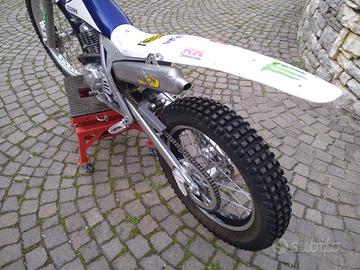 Scorpa TYS 175F, la moto è messa molto bene ed è l’ideale per chi vuole una moto affidabile e sempre pronta, senza tanti fronzoli, per andare in baita in montagna o per fare splendidi giri quasi in silenzio perchè fa pochissimo rumore, inoltre ha dei consumi bassissimi. Avviamento a pedivella estremamente morbido; La mette in moto tranquillamente anche un bambino, ha meno compressione di un 125 cc 2 tempi e quasi anche di un cinquantino. Chi vuole comunque può fare trial puro (divertentissima). Motore 175 4 tempi raffreddato ad aria YAMAHA, carburatore Mikuni Ammortizzatore e forcelle molto performanti anche per praticare il trial. Compreso il kit stradale (FANALE E IL SELLINO) A disposizione per altre info o foto. Grazie, Adriano Tag:Gasgas,Sherco,Vertigo,Beta,mulatrial,Sherpa,Randonè,Freeride