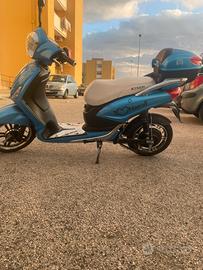 Vendo scooter elettrico Z-Tech dal design classico ed elegante, ispirato allo stile Vespa, colore azzurro metallizzato con sella chiara. Mezzo tenuto molto bene, ideale per città e spostamenti quotidiani.