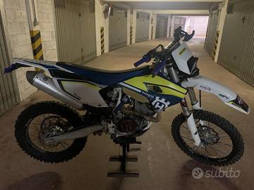Vendesi moto Husqvarna FE 350 4t del 2014, ore 340, gommata semi nuova con mousse, cambio d'olio regolare con manutenzione ordinaria, motore in ottime condizioni, completa di plastiche aggiuntive e del cavalletto centrale, è dotata di due fari quello originale e di recente è stato aggiunto quello a led Acerbis, moto perfettamente performante per qualsiasi tratto sterrato.