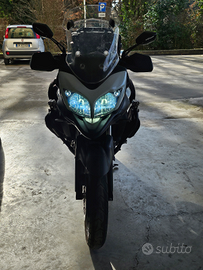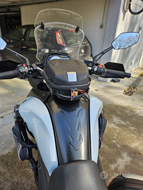 Accessori: baulletto posteriore, borse laterali in tessuto e da viaggio rigide( givi),borsa serbatoio,paramotori con borse,cavalletto centrale, fari a LED,faretti supplementari, para motore inferiore e parabrezza aggiuntivo. Gomma posteriore al 50%, anteriore al 30%, catena,pignone e corona con 10000km,candele e filtro aria con 3000 km. Moto mai caduta e sempre custodita in garage. Prezzo ?4900 trattabili