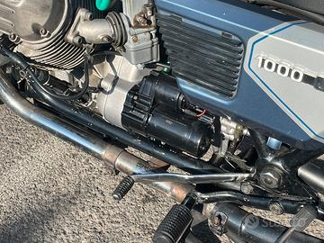 Moto Guzzi 1000 SP del 1983 perfettamente funzionante, tagliandata e revisionata, utilizzata giornalmente, moltissimi pezzi nuovi tra cui rubinetti benzina,motorino avviamento,batteria Motorbatt da 21A con 320A di spunto, regolatore di tensione, marmitte sportive SITO,ammortizzatori posteriori YSS, etc etc. Moto perfetta per realizzare una stupenda cafè racer o per avere un bellissima moto da viaggio vintage. Frizione completa di 3 dischi più il pignoncino cambio (versione aggiornata) e la molla del selettore sostituiti a 53.000km. Attualmente monta cupolino compatto di derivazione Ducati, conservati ho tutti i componenti originali che consegno con la moto. Posso trattare sul prezzo