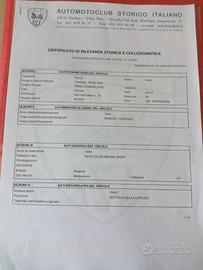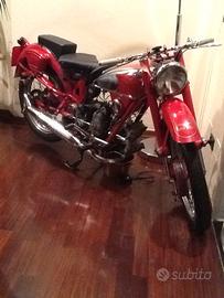 Vendo Moto Guzzi Airone Sport 250 cc Prima Serie, è Matching Number ; il n° di motore M81224 e n° di telaio 15467 ambedue riportati sul libretto di circolazione originale. La data di produzione è 1948 e prima immatricolazione nel 1949 con targa VI 6321, cambio di targa nera nel 1970 - VR 92055, mantenuta intonsa prima da mio padre e poi da me. Dopo il restauro è sempre stata tenuta nel salotto di casa la moto ha libretto e foglio complementare originale e ho allineato tali documenti presso Ufficio Motorizzazione di Ferrara, funziona perfettamente ed è stata revisionata nell'Agosto 2022 poi più utilizzata. Prima della vendita faro' la nuova revisione a mio carico. È in possesso del Certificato di Rilevanza Storica emesso dall'ASI. Perfetta in tutti i suoi particolari con verniciatura con il Rosso Carminio, filetti neri ed oro e cromature. Tutte le parti meccaniche ed elettriche sono originali, sin nei più piccoli particolari, compresa le minuterie che sono brunite o cromate. Il motore è stato completamente restaurato con pezzi originali, esso è il più performante dell'epoca rispetto al modello Turismo, infatti ha 13,5 CV ( 120 km/h) grazie ad un albero a camme, camera scoppio di nuova concezione ed un carburatore Dell'Orto SS.F.25 A più grande e scarico con marmitta cromata a coda di pesce. I freni sono in lega leggera maggiorati ed alettati con conseguente frenata più incisiva, i cerchi sono in alluminio bordo rialzato marchiati dalla ditta Borrani, anche queste parti erano fornite dalla fabbrica nel 1949 solo per la versione Sport 250 cc che era il modello stradale di punta della Moto Guzzi proprio per queste caratteristiche alcuni lo chiamavano anche "Astorino". La forcella anteriore è tele_ idraulica rovesciata, gli ammortizzatori posteriori a compasso con frizioni nuove, anche i pneumatici sono nuovi. Quanto detto è come risulta da Libretto di Uso e Manutenzione, e dal Catalogo Pezzi di Ricambio. Si chiede max serietà, no sognatori. Grazie