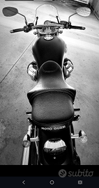 Batteria nuova tagliandata, 21800 km in uso quotidiano. Gomma posteriore nuova, ( gomma anteriore disponibile da montare) nella trasformazione guadagna contagiri e temperatura motore con apposite strumentazioni. A corredo faro, frecce, scarichi originali e altra sella originale moto Guzzi, c'è montata una sella soft moto più comoda per guidatore, fornite entrambe.