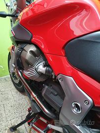 Optionals: leve "Evolution Italy"; manopole e specchietti in alluminio "Barracuda" serie "B-lux", cavalletto centrale, cupolino Touring "Moto Guzzi" e bauletto posteriore con relativa staffa; montato kit per il mancato avvio a freddo e a caldo. Dischi freni anteriori nuovi "Brembo" serie "oro". Batteria nuova cambiata 05-2025.