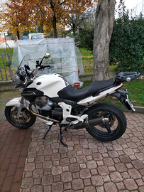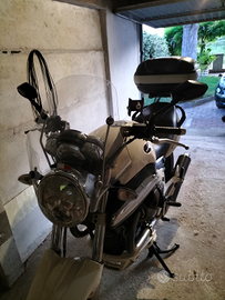Vendo moto Guzzi breva 1100 la moto è in buone condizioni sempre tagliandata monta una marmitta in carbonio per evitare scottature cambiato specchietti monta un bauletto GIVI da 52 litri le gomme sono nuove appena montate bridgestone. Ho anche la marmitta e gli specchietti originali . Appena fatto il tagliando completo olio motore ,cambio ,cardano ,filtro olio filtro benzina e candele filtro aria lavato perché è quello sportivo. Bollo pagato ad agosto.