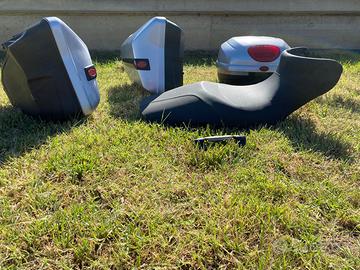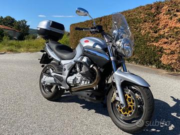 Vendo Breva 1200 del 2009, versione senza ABS. Acquistata originale, dato che faccio viaggi lunghi ho attualmente fatto allestire la moto come in foto 1: parte superiore della carena della Norge 1200 con logo originale Breva su entrambi i lati, silenziatore GRP (compreso suo libretto cerificato), sonda AIT di Belinassu idonea per il silenziatore. TUTTE le parti originali in ottime condizioni messe da parte in imballi separati ed etichettati per un pronto ripristino, inclusa sonda AIT e parabrezza originale Guzzi. A corredo valige laterali Guzzi originali 1^ serie riverniciate in tinta, bauletto GIVI riverniciato in tinta. Tutte le parti riverniciate in Grigio Guzzi cod. di fabbrica comunicato dal magazzino di Mandello del Lario. Ottime condizioni, qualsiasi prova.