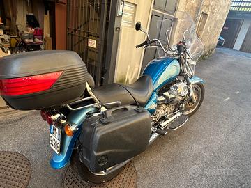 Moto ben tenuta completa di barre paramotore, tris di valigie,