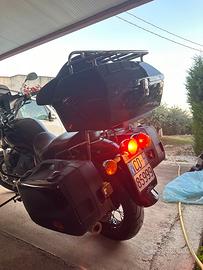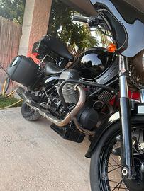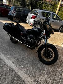 Moto Guzzi California 1100 anno 2005 solo 27000 KM La moto è stata completamente restaurata in ogni sua parte riverniciata Nera Total Black compresi i cerchioni fatti neri tagliandata compreso di kit valige laterali originali moto Guzzi da 40 litri valigia posteriore con poggia schiena in pelle da 48 litri e paravento maggiorato veramente stupenda introvabile in queste condizioni da vero amatore gomme nuove specchietti nuovi cromati no perditempo no scambi il prezzo è leggermente trattabile