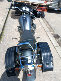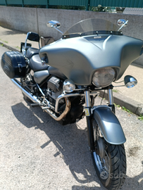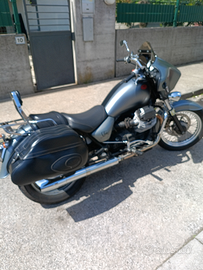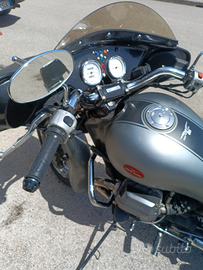 Moto del 2001, contachilometri segna circa 100.000 km ma è stato sostituito dal vecchio proprietario per la trasformazione del cupolone, in realtà ne ho un'altro che segna 37000 km e a detta del vecchio proprietario sono quelli i km della moto, comunque sia ne fa ancora minimo altrettanti. Moto in ordine, cambio olio eseguito da poco, freni frizione ok, gomme un po' vecchiotte ma con pochi km. Dotazione: manopole riscaldate, presa accendisigari e USB, faretti, batwiing, barre para motore, scarico a pinna dall'ottimo sound, ammortizzatori posteriori a gas, porta borse laterali (NO BORSE, già vendute), Sissi bar con portapacchi posteriore (schiena lino da rifoderare).