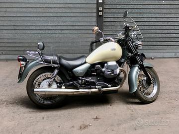 Motoguzzi California Stone 1100cc, anno 2003 km 34478 Accessori montati: parabrezza mod america, manopole special, sissy bar originale, bulloneria testate in ergal, barilotto frange manopole in cuoio. Iscrivibile ASI. Prezzo trattabile.