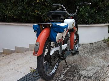 Dingo 50 cc monomarcia originale uniprò, con identificazione telaio riportata su dichiarazione smarrimento Stazione Carabinieri del 1976 (documentazione originale), tenuto sempre in box di famiglia, da ripristinare completamente in quanto rimasto fermo da tantissimi anni. A corredo oltre le borse posteriori il Libretto uso e manutenzione (copia), purtroppo non si trovano più i paragmbe che erano di metallo pesante e di colore beige.Il motorino è visibile a circa sette chilometri daTerracina sulla mediana.