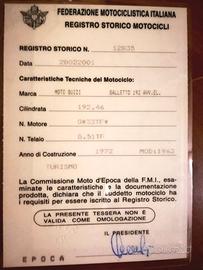 Vendo Galletto 192 del 1962, moto dismessa dalla Cassa per il Mezzogiorno-Ufficio Acquedotti di Catanzaro nel 1971. Acquistata dall'attuale proprietario nel luglio 1972 per la sua prima immatricolazione (sono in possesso di tutti i documenti a prova di quanto detto).