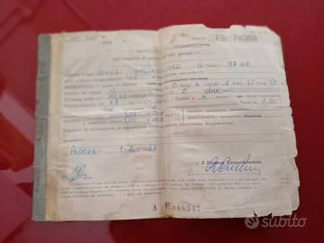 Unico passaggio di proprietà (primo proprietario ANAS). 52000 km. Immatricolazione febbraio 1963. Accensione elettrica. Bauletto posteriore con chiavi. Con documenti. Prezzo trattabile.