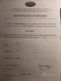 Vendo per inutilizzo Moto Guzzi GTV 500cc bitubo del 1937 già ASI e con certificato di origine dove si attesta il numero di telaio e motore, perfettamente funzionante targa CO 4 numeri