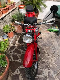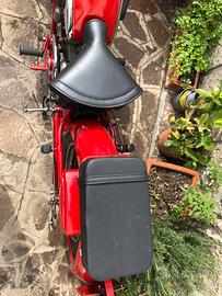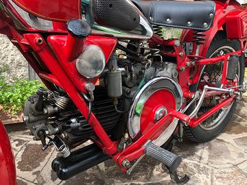 Moto Guzzi GTV 500 Perfette condizioni. Gomme nuove. Anno 1947 Tipo: Monocilindrico orizzontale a 4 tempi (OHV) con valvole in testa comandate da aste e bilancieri Potenza: 18,9 hp a 4300 giri/minuto Cambio: 4 marce Velocita: 120 km/h Telaio: Doppia culla in tubi d'acciaio Sospensione anteriore: Forcella a parallelogramma con molla centrale Sospensione posteriore: Sistema "elastico" brevettato Moto Guzzi, con forcellone oscillante e molle alloggiate in scatole sotto il motore (ammortizzatori a frizione) Freni: A tamburo su entrambe le ruote