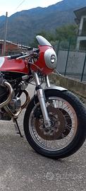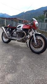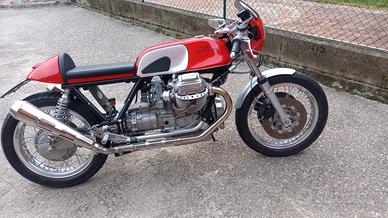 Vendo Moto guzzi cafè racer su base le mans seconda serie motore completamente revisionato con pistoni e cilindri nuovi, testate rettificate con sedi valvole rinforzate per poter utilizzare la benzina verde ammortizzatori posteriori nuovi serbatoio cupolino e codino in alluminio impianto frenante nuovo tutte i cavi di trasmissione e tubi freno in acciaio inox cerchi a raggi impianto di scarico tutto in acciaio inox e molto altro resto a disposizione per ulteriori informazioni prezzo 10000 euro trattabili