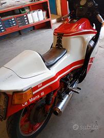 Vendo Moto Guzzi Le Mans lll 850 cc anno 1982 con 72000 km, perfettamente funzionante, personalizzata, esente da bollo, mai caduta od incidentata, sempre manutenuta, documenti completi. Vendo con parti originali quali carene, cupolino, parafango anteriore e sella/portatarga. Aggiungo ricambi originali nuovi per carburatori non completi, guarnizioni pinze, pacchetto pompa freno anteriore. Vendo per impossibilità di utilizzo.