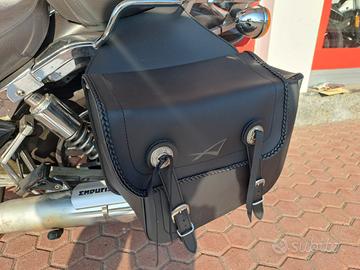 ACCESSORI: TELAIETTI + BORSE LATERALI IN PELLE - SISSY BAR + PORTAPACCHI ORIGINALI MOTO GUZZI - PARACALORI SCARICHI - PARABREZZA - PRESA 12V A MANUBRIO