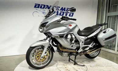 DEK:[10533568] OTTIME CONDIZIONI COMPLETAMENTE ORIGINALE - VALIGIE LATERALI SPECIFICHE ORIGINALI GUZZI - PREDISPOSIZIONE ATTACCHI PER BAULETTO - ABS Motore: bicilindrico a V 90° da circa 1.151 cc, raffreddato ad aria, 2 valvole per cilindro, alimentazione a iniezione elettronica. Potenza: circa 90 CV a 7.500 giri/min. Coppia: circa 100 Nm a 5.800 giri/min. Trasmissione: cambio meccanico a 6 marce, trasmissione finale ad albero (cardanica). Telaio e ciclistica: telaio tubolare in acciaio a doppia culla; forcella anteriore telescopica Ø 45 mm, escursione circa 120 mm; sospensione posteriore monobraccio con collegamento progressivo, escursione circa 140 mm; cerchi in lega da 17'': pneumatico anteriore 120/70-17, pneumatico posteriore 180/55-17; freno anteriore doppio disco Ø 320 mm con pinze 4 pistoncini, freno posteriore singolo disco Ø 282 mm. Altezza sella: circa 800 mm. Peso: circa 246 kg a secco. Serbatoio: capacità circa 23 litri. Stile: moto touring-gran turismo "alla Guzzi", impostazione comoda e stabile per viaggi e tragitti lunghi, posizione di guida confortevole, carenatura/parabrezza integrati, manubrio ampio; design solido con evidenti richiami al marchio e all'eredità motociclistica. Carattere: pensata per chi cerca una moto con motore generoso, buona capacità di viaggio, stabilità e comfort anche in coppia o con bagagli; ideale per tragitti misti e turismo, meno indicata se cerchi una guida sportiva estrema "al limite" o per ambienti stretti dove maneggevolezza e leggerezza sono prioritarie.La motocicletta viene consegnata con TAGLIANDO e REVISIONE in ordine, GARANZIA DI 12 MESI con DICHIARAZIONE DI CONFORMITA' a norma di legge. VALUTIAMO IL RITIRO IN PERMUTA DI MOTO / SCOOTER / AUTO BONTEMPI MOTO -SHOW ROOM con 200 OCCASIONI SELEZIONATE e GARANTITE- -ACQUISTIAMO MOTO E SCOOTER CON PAGAMENTO