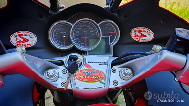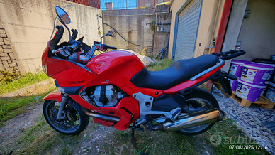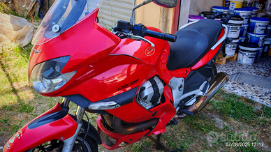 Moto revisionata,tagliandata, pneumatici 60%, meccanicamente in buono stato.Completa di borse laterali e bauletto posteriore (cerniera rotta ma si può aggiustare)tutto originale in tinta Moto Guzzi.A causa di caduta da fermo la plastica esterna della freccia anteriore sinistra spaccata ma funzionante.Disponibile incluso nel prezzo doppio cupolino alto regolabile sia originale che Givi. Prezzo trattabile