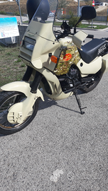 La NTX 750 Nevada Scrambler , grazie all'affidabile meccanica Nevada è brillante e precisa, molto divertente nello sterrato e strade bianche, questo esemplare ha la grafica personalizzata Sahara, il serbatoio e stato realizzato con gragica tecnologica. La moto è stata manutenzionata a settembre scorso, sostituiti ammortizzatori posteriori, collettori carburatori ,sostituito cavo frizione,sostituite le 2 centraline Motoplat, revisionati steli forcelle e sostituita la batteria . La moto è pronta all'uso , il pneumatico posteriore andrebbe sostituito, i documenti sono in regola, è esente bollo , il passaggio di proprietà è ridotto, anche l'assicurazione, perché è moto storica .