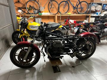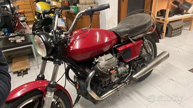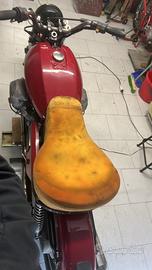 Avevo preso già la sella della 850 t3 California da rifoderare e adattare e anche un cupolino ex polizia v7 versione vintage oltre al manubrio custom e effettuato tagliando completo e sostituito pompa anteriore e tubi in treccia .