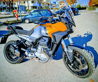 Moto Guzzi Stelvio giallo Savana, stato pari a nuovo, del 2024. Moto in garanzia fino a Giugno 2026 (eventualmente estendibile). Parabrezza elettrico, presa caricabatterie, Cambio elettronico. Tagliando fatto ad Ottobre. Da vedere