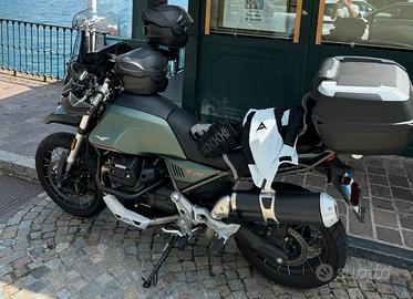 moto guzzi V85TT febbraio 2024 con sella originale e sella comfort + cupolino originale e anche cupolino Gt più alto colore verde guzzi