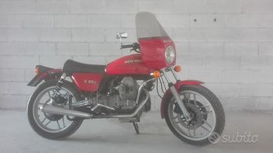 Moto Guzzi v35 II telaio n°25. la moto è stata personalizzata con pezzi di stesso modello e colore. le modifiche sono tutte ripristinabili rimontando le sue parti. La moto viene fornita con gomme nuove. Doppia coppia di parafanghi anteriori e posteriori. Doppia sella una monoposto e una originale. Doppia coppia silenziatori. una aperti e una di sito ancora imballati nella loro confezione. Doppia coppia di ammortizzatori posteriori, originali e yess. Cupolino. Cavalletto laterale. Paramotore. specchietti retrovisore. tutto intetcambiabili le parti.