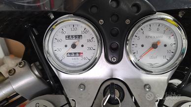 Vendo a malincuore Moto Guzzi V11 1°serie, in perfetto stato e sempre maniacalmente tagliandata. Monta la gomma posteriore 180/55 omologata a libretto, albero a camme F1 Sport, doppia accensione, scarichi in carbonio HPE e cupolino in carbonio. Sono stati da poco sostituiti tutti i cuscinetti del cambio e la frizione, inoltre è stata fatto la modifica alla molletta del cambio. Dispongo anche del fanale e porta targa originale, oltre a quello in foto. Ogni intervento è documentato ed effettuato presso l'officina MPC di Verano Brianza. Non essendo più assicurata, è possibile provarla solo nel cortile di casa o nella via privata antistante. Vendo per inutilizzo. Bollo 2026 già pagato. Prezzo trattabile dopo visione.