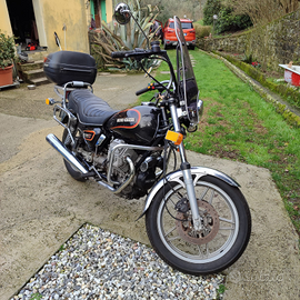 Guzzi V35 custom in ottime condizioni. gomme nuove, batteria appena cambiata, fatti diversi lavori per renderlo al top meccanicamente. parabrezza, bauletto e borse rigide laterali.