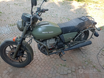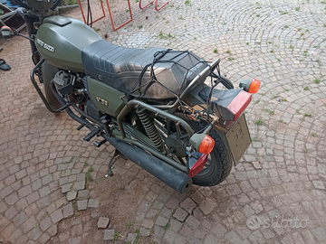 Rara Moto Guzzi V50 NATO. 1984. Versione originale esercito olandese, motore con specifiche militari diverse dal modello di serie (compressione, valvole, carburatori, cambio) Accensione elettronica. Avviamento elettrico e con pedivella. Meccanicamente in ottime condizioni, ODO 11700 Km. Qualche km fa effettuato tagliando con cambio oli motore, cambio e coppia conica, filtro aria ed olio con guarnizioni nuove. Frizione nuova, sostituiti paraolio motore e vari del cambio. Pneumatici cambiati. Sostituiti paraolio guida valvole, guarnizioni testa nuove con riporto in silicone. Carburatori puliti e revisionati con guarnizioni nuove, galleggianti e spillo (per benzina verde); nuove guarnizioni di aspirazione e scarico. Manicotti e diverse parti in gomma nuove. Sostituite candele e pipette. Nuove pastiglie freno. Batteria AGM nuova.