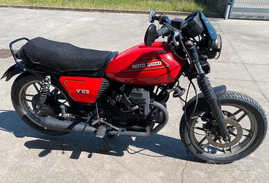 Moto Guzzi V65 Brat Style, tagliandata e revisionata, batteria e gomme nuove; completa dei pezzi sostituiti (scarichi, parafanghi, faro, indicatori direzione).