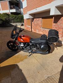 Vendesi moto Guzzi v7 stone, ottime condizioni, tagliandata annualmente, tenuta in garage equipaggiata con borse laterali adattate Guzzi, bauletto vintage in cuoio con serratura e cupolino maggiorato Givi