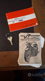 V7 prima serie, mai restaurata, prima vernice, conservata in ottime condizioni. Targa e libretto originali, iscritta ASI. Sono il secondo proprietario dal 2014. Trousse attrezzi in tela originale, doppie chiavi, libretto uso e manutenzione. Chilometri 66.000 originali. Batteria nuova.